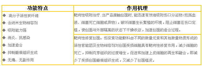 伤安素功能敷料是由特殊工艺合成的含纳米生物相容剂的高分子活性碳纤维加工而成。该材料呈黑色、片状、无毒性、无刺激、无致敏,质地细腻柔软,透气性好,易贴敷创面,患者感觉舒适,无痛苦且治疗周期短,费用低廉,效果肯定,是目前临床治疗Ⅱ度以上烧伤的又一种新型高效的医用材料,值得临床推广应用。