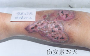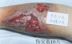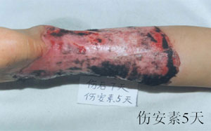 二、保湿性能好 正常皮 21ml/h•m² 浅Ⅱ度(1天)30ml /h•m² 伤安素 13.4 ml /h•m² 纳米银 15.7ml /h•m² 水凝胶 15.3ml /h•m² 油纱布 15.3ml /h•m² 说明伤安素保湿性能好 三、创周炎症反应消退快