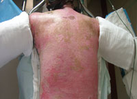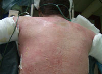 5、适应证广泛 ◆新鲜Ⅱ度创面 ◆磨削痂,邮票植皮或供皮区 ◆感染创面 ◆愈合后破溃的残余创面 ◆各种原因所致的慢性溃疡 ◆褥疮 背部伤安素 脱痂—伤安素银锌霜 猪皮+伤安素 术后2周 术后5周 术后8周 植皮覆盖 异体皮+微粒 伤安素 邮票植皮愈合良好